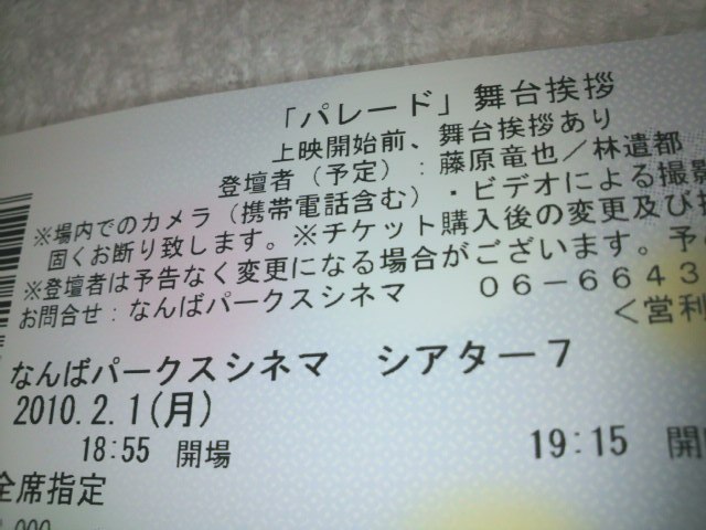 の舞台挨拶のチケットです